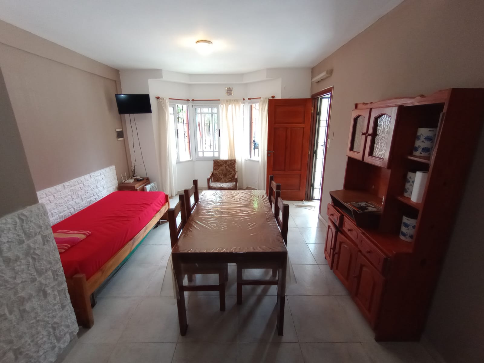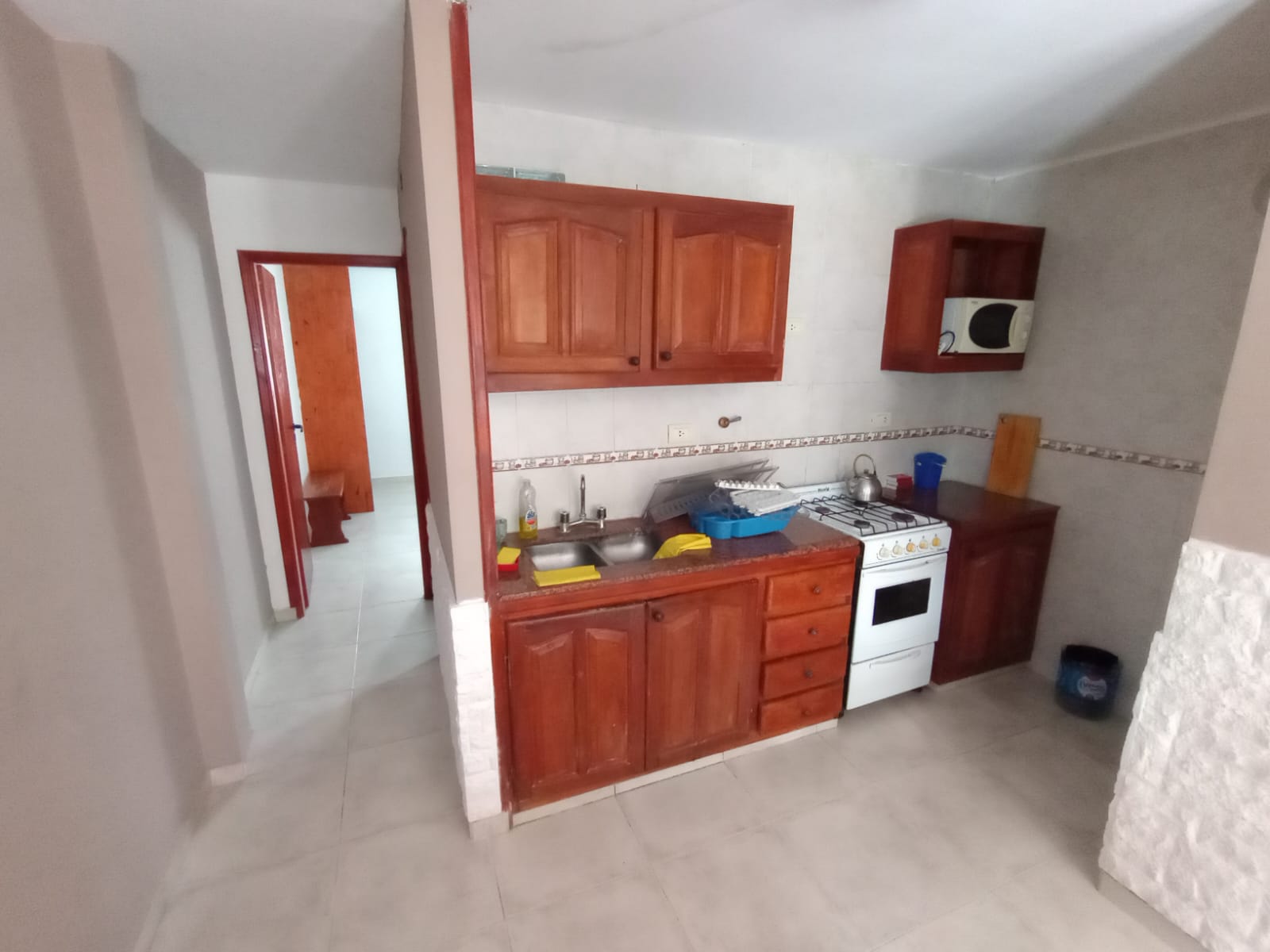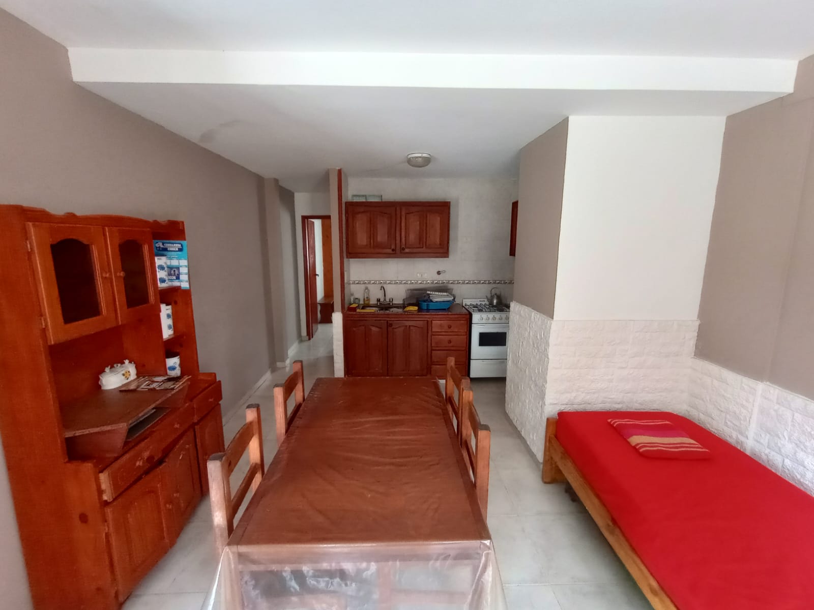 Ingresando a la propiedad nos encontramos con cocina-comedor, baño y habitacion, patio al fondo y parrillas de uso comun.