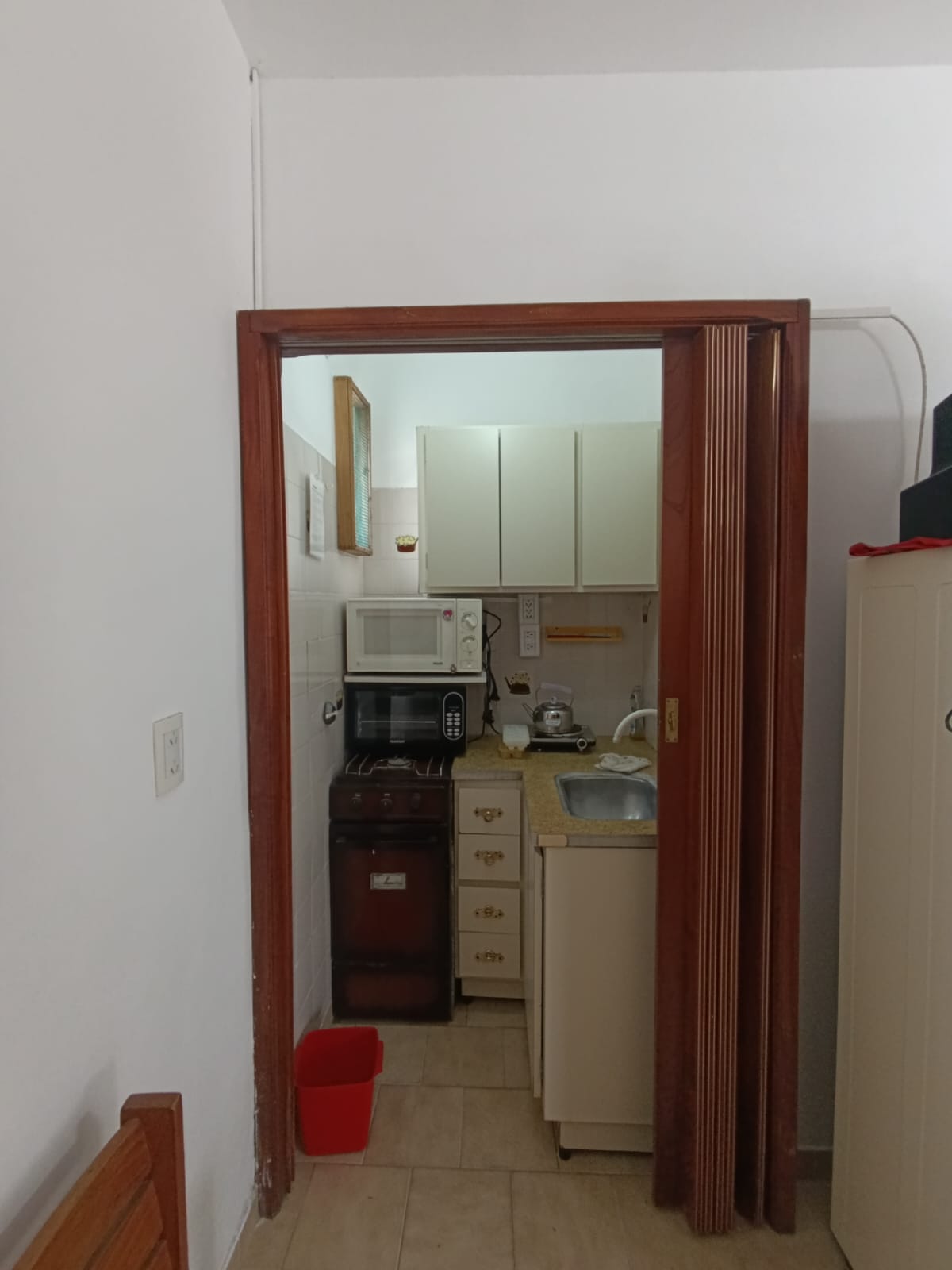 Departamento monoambientes, cocina y baño.