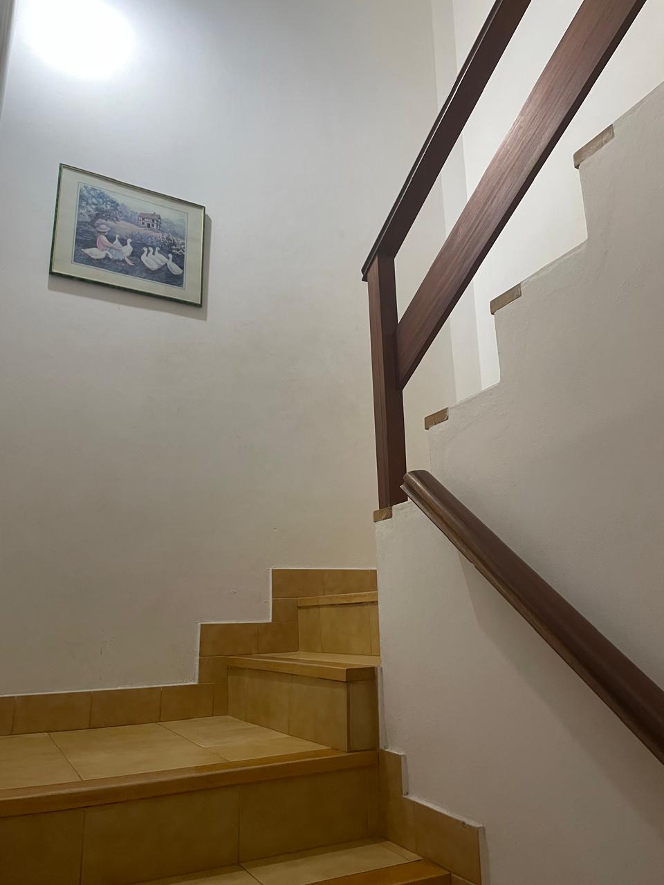 En planta alta subiendo las escaleras tenemos dos habitaciones y baño completo. Una de las habitaciones tiene valcon que da hacia el patio.